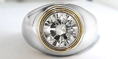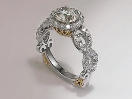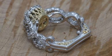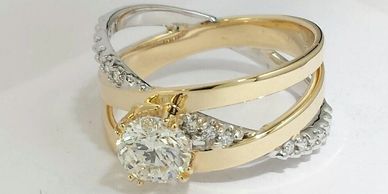 Custom diamond ring set in 14kt white and yellow gold.