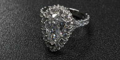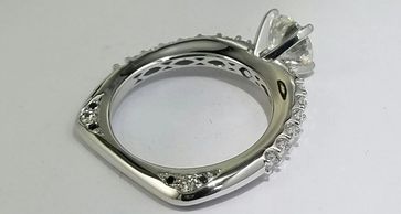 Custom diamond engagement ring set in 14kt white gold.