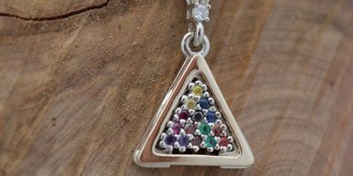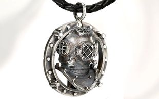 A custom pendant made in silver and antiqued using an acid etching technique.