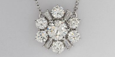 A client used a couple of her rings to create this pendat. All diamonds set in 14kt white gold.
