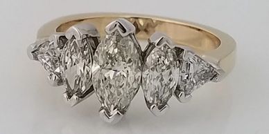 Marquise Diamonds in White and Yellow Gold Ring