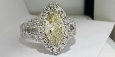 Yellow marquise diamond set in 14kt white gold.