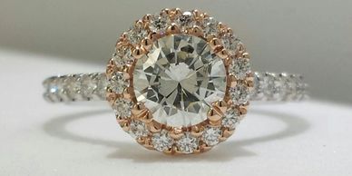 Custom ring made with 14kt yellow, rose, and white gold.